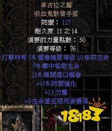 6、手套:绿色手掌的安置(提高输出),如果是用来刷超级6BOSS可使用暗金“卓古拉之握”(触发偷取生命诅咒)