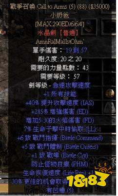 1、武器:符文之语“悔恨”(推荐用5孔精英底材幻化之刃做,基础速度较高同时可以免修理,最大只需要用到28号符文)