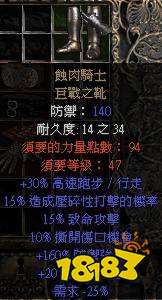 8、鞋子:暗金“蚀肉骑士”,物理职业较为常用的鞋子,骑士用的话千万别升级(升级后力量需求极高)