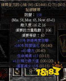 7、腰带:综合属性偏上的暗金“维而登戈的心结”(最高15%物免和40体力),包里最好备一条暗金“雷神腰带”,在部分特殊场景和挑战6BOSS超级墨菲斯托使用