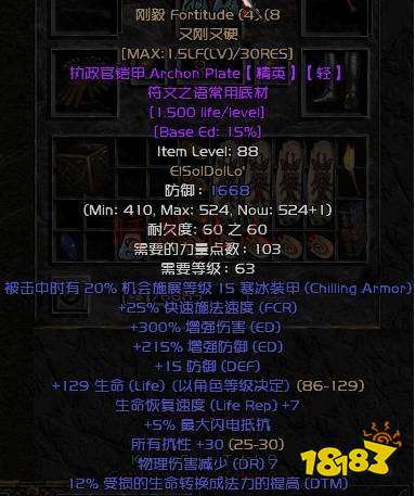 2、衣服:符文之语“刚毅”(底材通常选择4孔有形执政官,不过超强的底材做出来维修费用非常高,平时多备几个8号符文专门修复它)