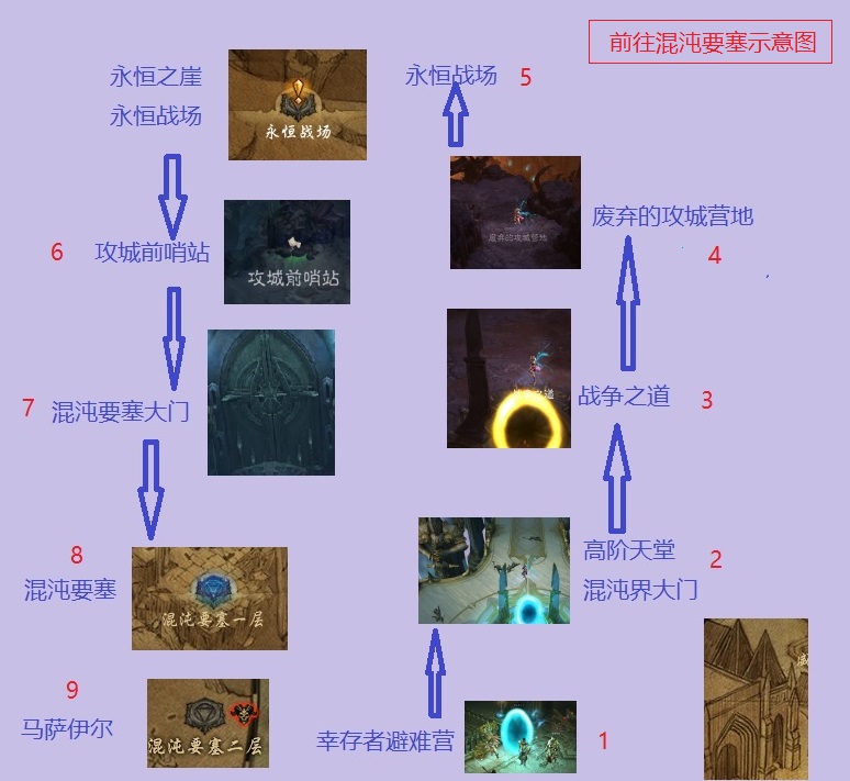 奈非天历经艰险,穿越混沌界,攻破了混沌要塞大门,进入了混沌要塞。这里附上奈非天的前进示意图。