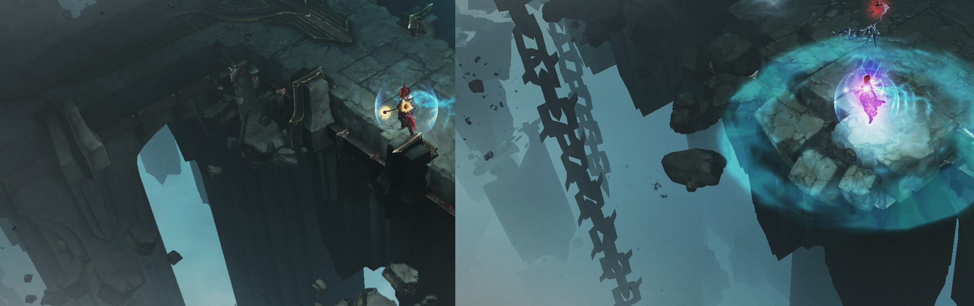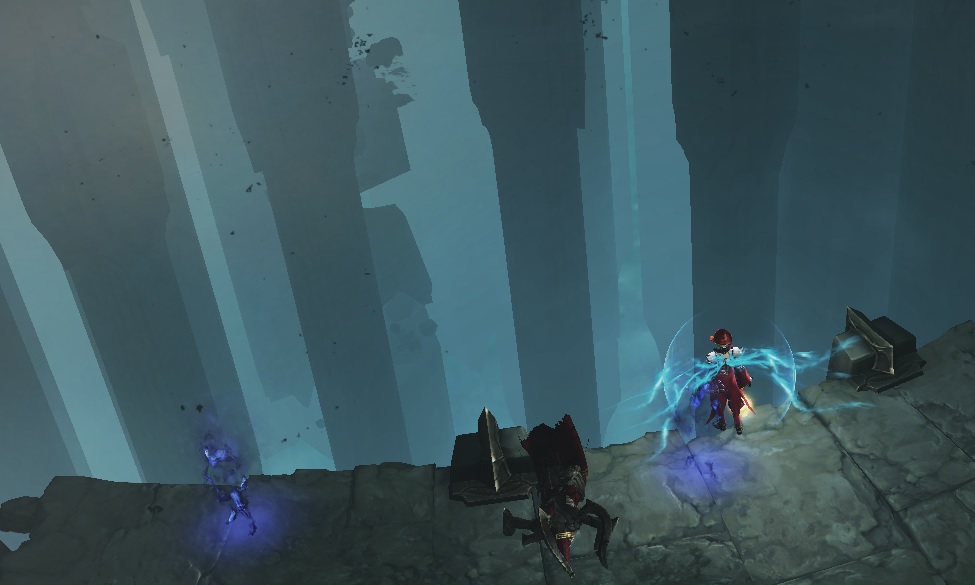 这里我们可以看到,有蓝色雾状灵魂在运动,那隐藏在浓雾中的三连哥特式门楣若隐若现,远观更是有种建筑秩序之美感。