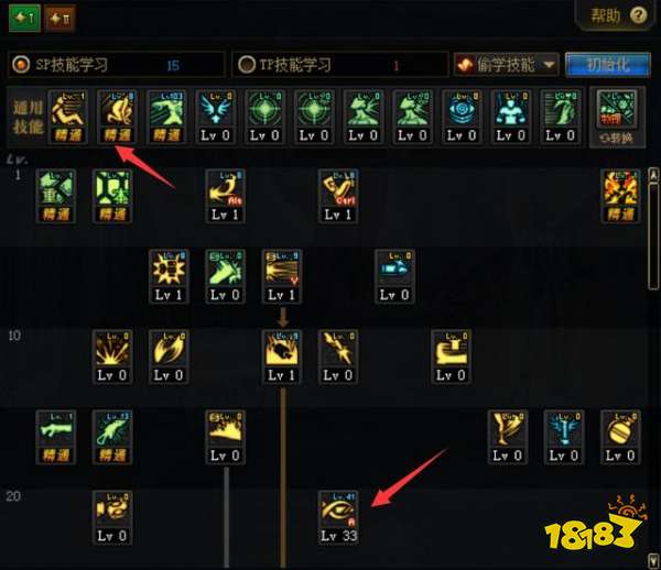 通用技能大枪因为不缺暴击率,所以不需要点物理暴击,只需要点1级的蹲伏即可,而被动技能重火力奥义和精通都需要点满,至于重火器拔击改成了5级,然而当前版本打爆发输出,这一个技能没有多大的意义(刷图是不可能走到怪堆里放技能的),可以不点省下20点SP,其他技能一律不点,这里选择点反坦克是在全部核心技能加满后剩下的SP才点的。