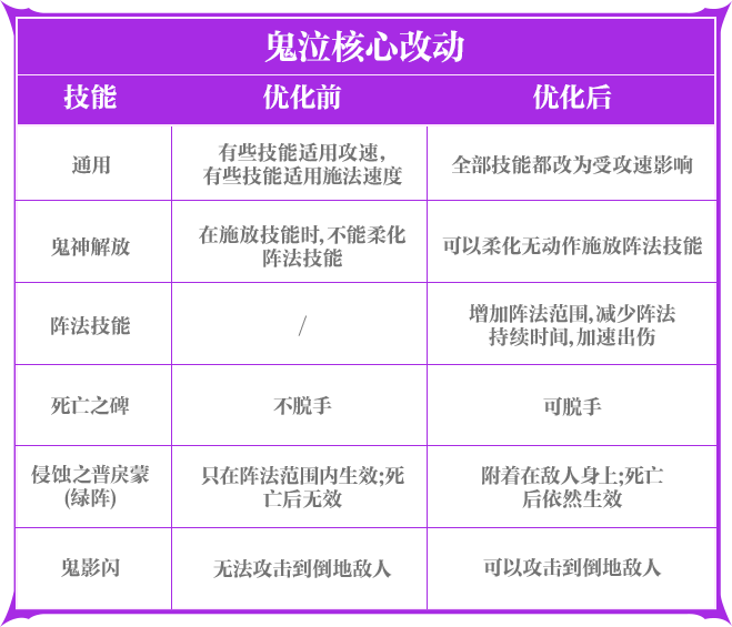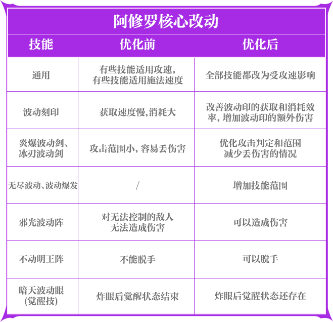 鬼泣、阿修罗在新版本中迎来优化,在保留职业风格和特色的同时,改善了技能形态和输出体验。下面仅同步核心改动,详细的最终改动以游戏内为准。