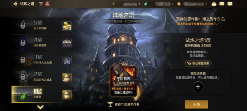 试炼之塔进行奖励重置,勇士们可以重新进行挑战赢取奖励,并且新增[祥瑞溪谷的记忆]奖励。当物品栏持有祥瑞溪谷的记忆时,通关祥瑞溪谷可消耗该道具额外掉落1件史诗装备。
