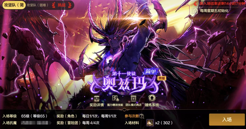 角色达到65级后且完成任务[外传]浮现的噩梦后即可参与,入场需要消耗2个净化之匣材料。